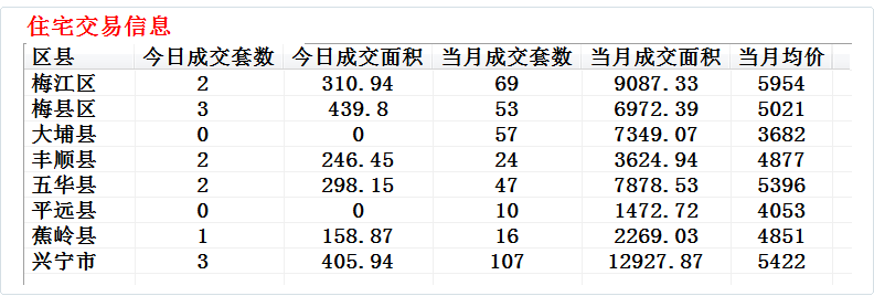 【兴宁市】2025-09-19楼盘网签当天总销量5 套住宅均价5422-兴宁找房就上-兴宁房源网