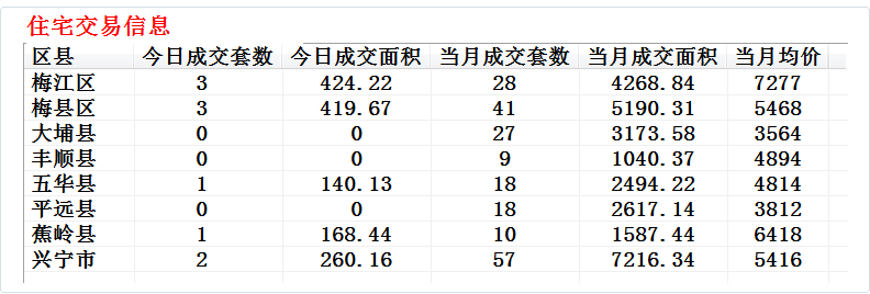 【兴宁市】2025-10-12楼盘网签当天总销量5 套住宅均价5416-兴宁找房就上-兴宁房源网