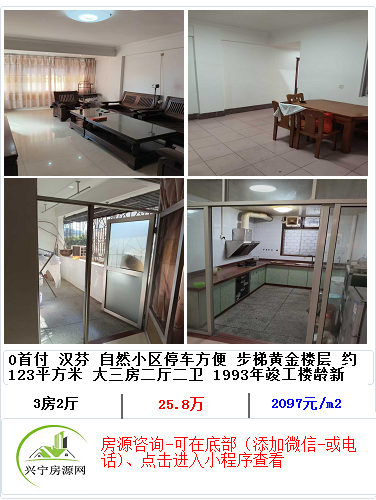 0首付 文化广场金源花园大小区 鸿运楼黄金楼层 原装电梯三房两厅两卫约120平方 房屋保管新 视野开阔 带部分家私家电 仅售59.8万~~