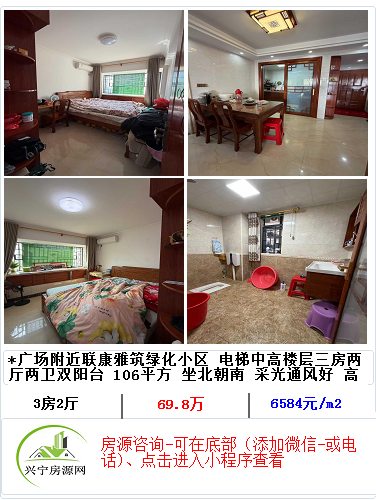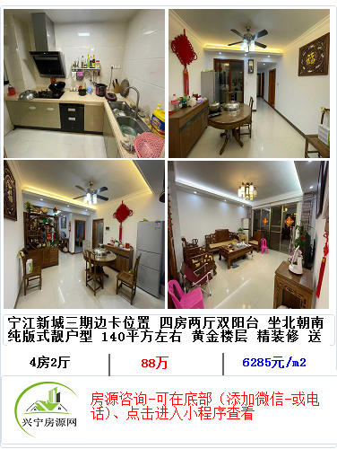 *南部新城 宁江新城五期大小区 大二房二厅 黄金楼层 约90平方米 全层品牌 豪华装修 九九新 坐北朝南 拎包入住 一口价 59.8万看房 兴宁聊房张老师