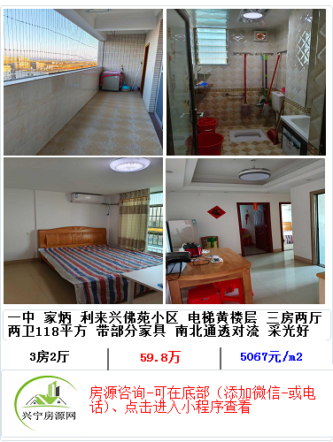 实验 利来兴佛苑电梯好楼层3房2厅 高档装修 拎包入住 业主长期在外保管非常好 有红本过户便宜 仅售59.8万 首即入住
