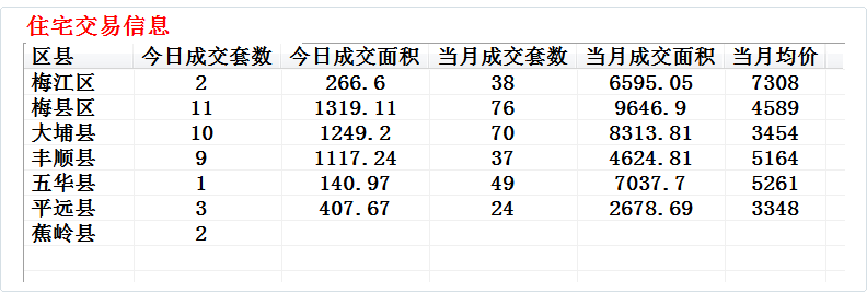 【兴宁市】2026-02-24楼盘网签当天总销量15 套住宅均价5310-兴宁找房就上-兴宁房源网