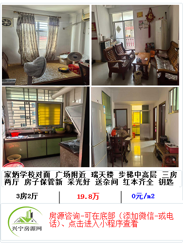 宁江河边怡景花园步梯3楼3房2厅2卫 带部分家具家电 坐北朝南 带大杂间 约135平方 红本齐全可按揭 业主开价43.8万
